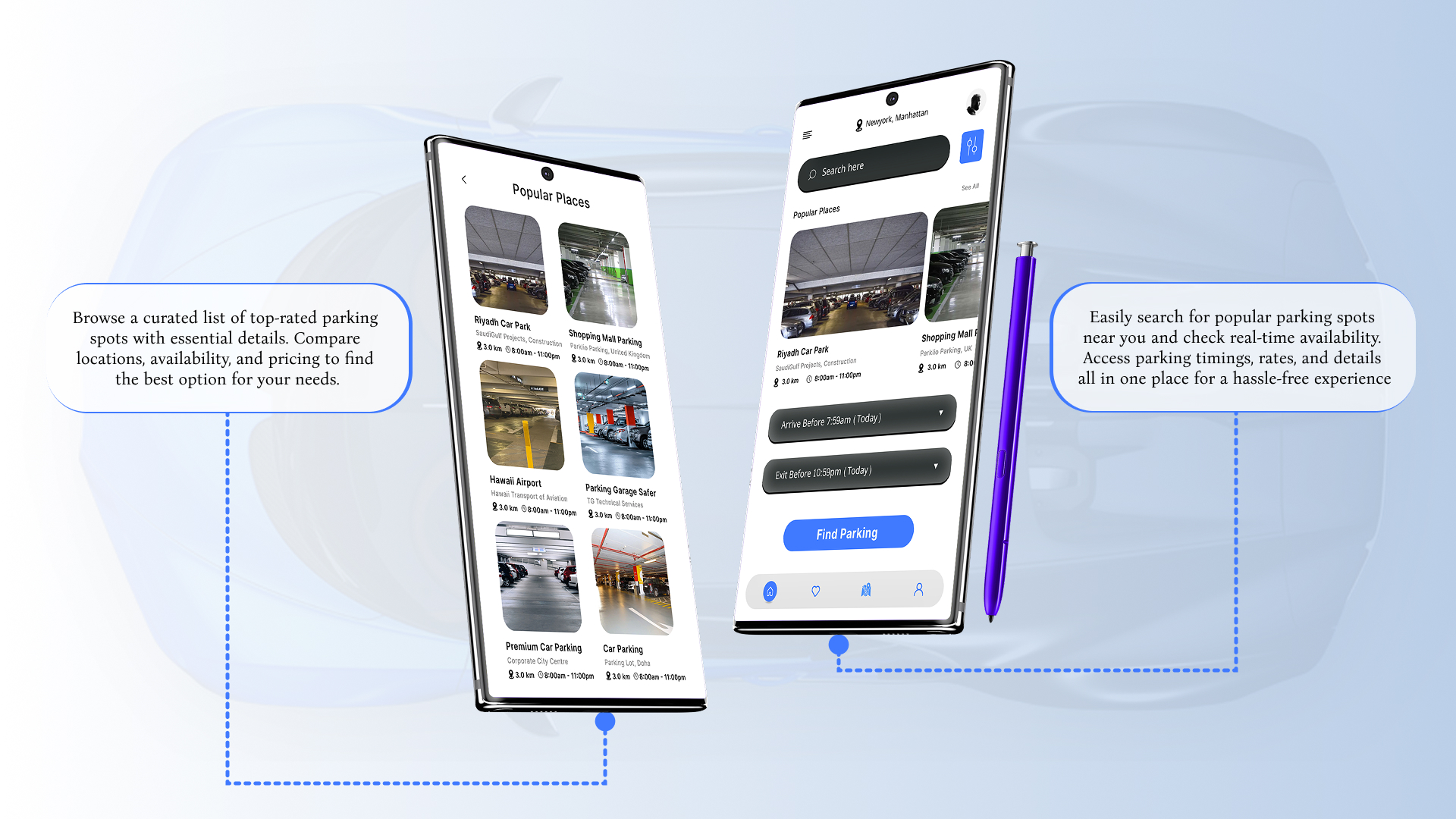 Say goodbye to endless searching. Discover nearby parking instantly, reserve your space, and enjoy a hassle-free journey with our smart parking app.